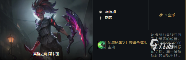 阿卡麗的技能可以沖向站位集中的敵人之中,對(duì)其造成高額的魔法傷害并標(biāo)記7秒,當(dāng)有標(biāo)記目標(biāo)的血量到了15%/25%/90%以下,阿卡麗沖過(guò)來(lái)穿透目標(biāo),將目標(biāo)直接斬殺并對(duì)沿途敵人造成魔法傷害。首先玩家可以看到阿卡麗的分兩段,第一段AOE加標(biāo)記,第二段斬殺+AOE。并且阿卡麗的法力值上限為50,技能非常容易觸發(fā),毫無(wú)疑問(wèn)阿卡麗已經(jīng)成了S6刺客體系的唯一大C。也正是阿卡麗的過(guò)于強(qiáng)勢(shì),給了很多玩家S6刺客非常厲害的感覺(jué),但是作為5費(fèi)卡拿不到阿卡麗,刺客就是第八出門(mén)。