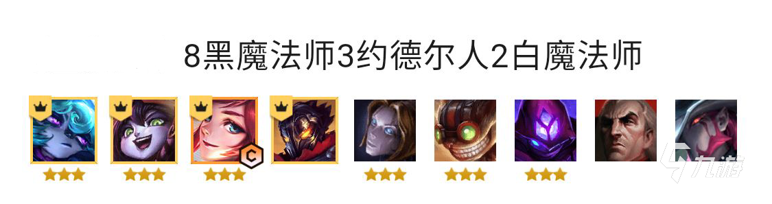 陣容羈絆:八黑魔法師三約德爾人兩白魔法師。