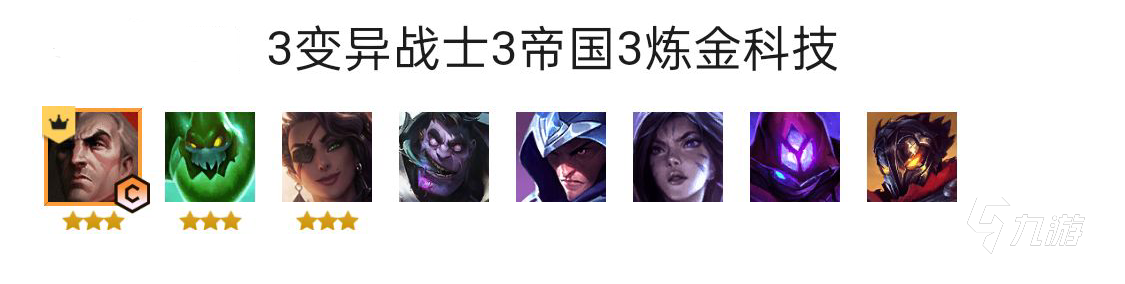 陣容羈絆:三變異戰(zhàn)士三帝國三煉金科技。