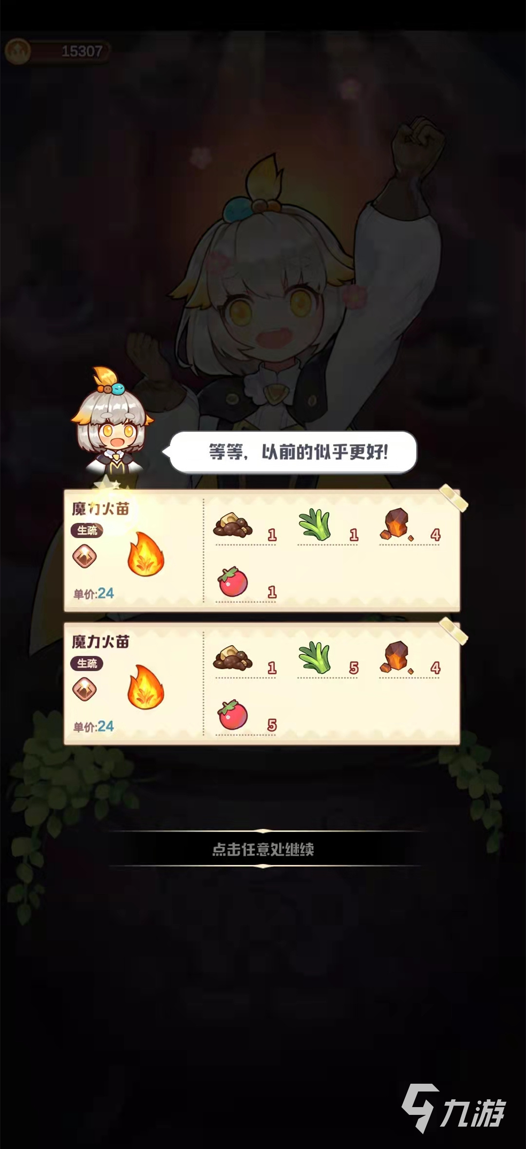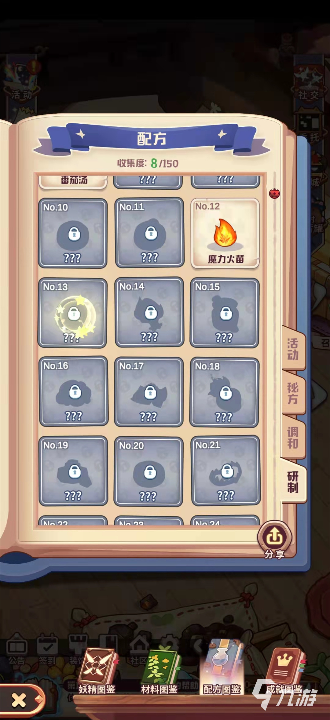 不用魔法冰泉小編研制了八種方法,在沒有魔法冰泉的研究配方里妖精都是同一個(gè),第一種方法是四種材料都用大量的,第二種方法是四種材料都是少量的,第三種是魔法元草是少量的,其他三種材料都是大量的,第四種方法是甜味黏土是大量的其他三種是少量,第五種方法是甜味黏土和火晶石是大量的,其他兩種是少量的,第六種是火晶石是大量的,其他三種都是少量的,第七種方法是魔法元草是大量的,其它三種是少量的,最后一種是甜味黏土和火晶石是少量的,其他兩種是少量的,值八種方法所得出來的還是都三星的魔力火苗。