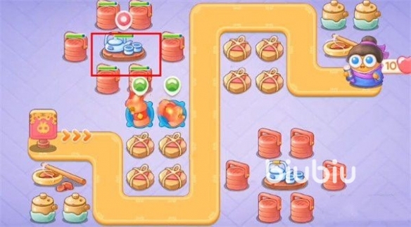 這一關(guān)建議選擇鞭炮作為主力輸出,開局使用鞭炮,然后當(dāng)怪物走過(guò)拐角的時(shí)候,直接鎖定打死。繼續(xù)放置鞭炮用來(lái)開圖還可以順便清理怪物。這一關(guān)會(huì)出現(xiàn)熱氣球兔子直接劃走它就可以,所有的位置放鞭炮很輕松就能過(guò)。