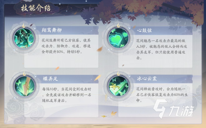剩余的一些小技能也很厲害,其中有一個(gè)技能可以魅惑對(duì)方攻擊力最高的一個(gè)單位三秒鐘,也就是這三秒鐘的時(shí)間完全夠其他俠客輸出了,尤其是花間的被動(dòng)每次釋放普攻之后還能夠?yàn)殛?duì)友恢復(fù)生命值,如果要說(shuō)她是版本最強(qiáng)輔助俠客估計(jì)沒(méi)人會(huì)反駁吧?