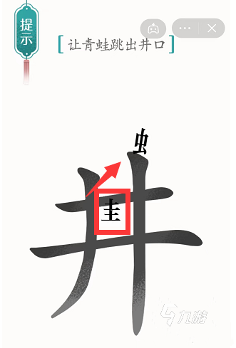 其中第一關就是我們大家都熟知的成語,井底之蛙。我們需要通過幫助小青蛙跳出井底,這一關才算是闖關結束。而當我們將這一關闖關完成后畫面也會轉化為我們闖關完成的動畫,這種動畫與漢字的結合很吸引我們的小伙伴們。