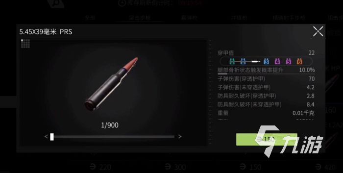 prs在游戲當(dāng)中屬于肉彈,這個(gè)子彈數(shù)據(jù)方面是不如上面的bp,不過在面對(duì)3級(jí)甲左右的敵人傷害是差不多的,而且價(jià)格方面也是非常便宜的,如果小伙伴們主要是打游蕩者的話,這個(gè)子彈的性價(jià)比會(huì)更高。