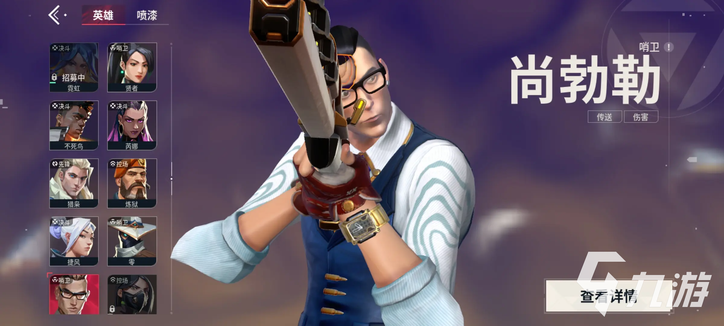 2技能放置傳送錨點,可利用錨點進行傳送,這個招式主要是方便他展開迅速位移,快速到達指定位置,適合進行追擊或者撤離。3技能激活后可擁有一把重型手槍,持槍時能進行精準射擊。大招能召喚威力強大的定制狙擊槍,命中敵方上半身任何部位都能將其擊敗,被擊敗的敵方留下力場,其他對手受到減速。