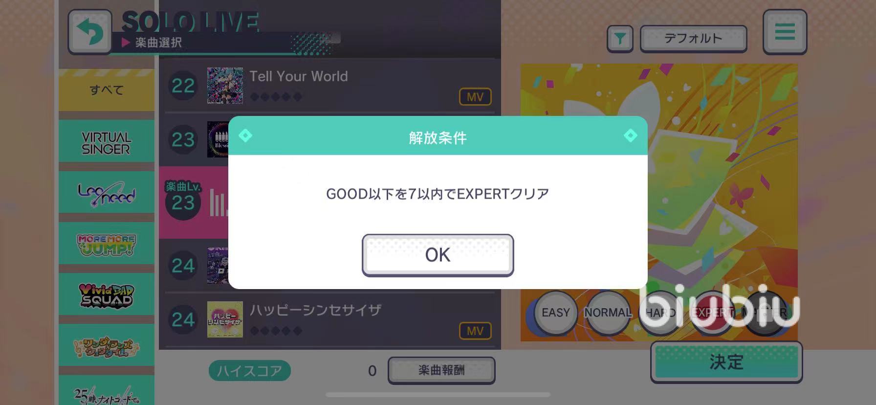 這5個(gè)難度模式前4個(gè)都是可以直接選擇的,一開始第5個(gè)噩夢(mèng)模式是處于鎖定狀態(tài)的。它需要玩家完成指定的任務(wù)才能開啟,在專家模式內(nèi)該歌曲的good次數(shù)少于7次,只有滿足了這個(gè)條件,噩夢(mèng)級(jí)別的難度模式才能讓玩家參與,不然它會(huì)一直處于鎖定狀態(tài)的。