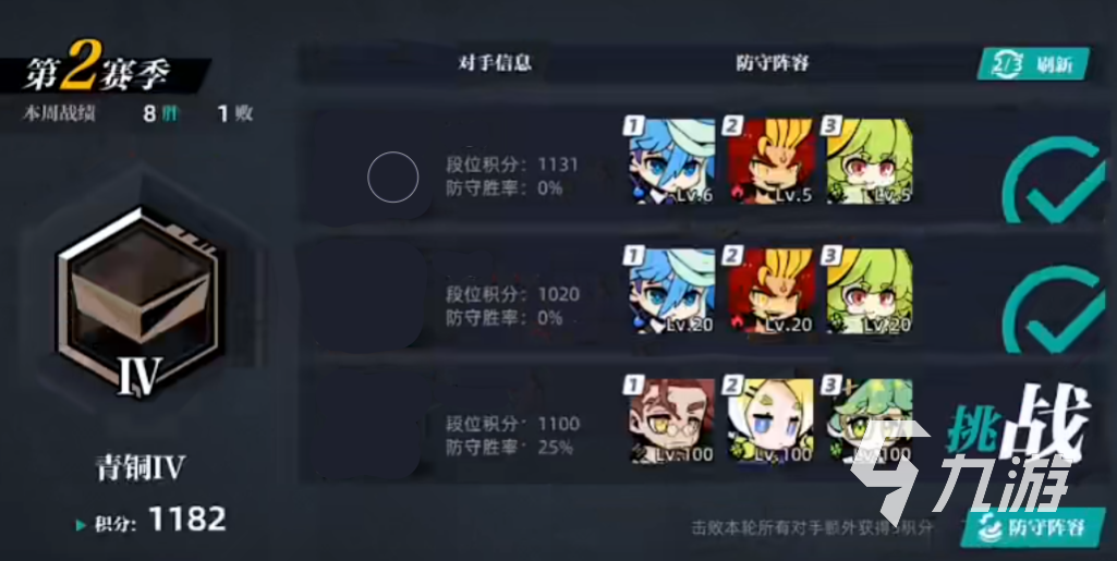 在競(jìng)技場(chǎng)中玩家們能夠看到對(duì)方的陣容,然后可以選取自己能夠打的過(guò)的進(jìn)行挑戰(zhàn),這里建議各位可以選擇挑戰(zhàn)那些防守為主的陣容,這樣獲取勝利的幾率要大一些。只要在對(duì)戰(zhàn)的時(shí)候多采用道具來(lái)刷新敵方,這樣可以更快的擊敗他們 ,只要將同組的人員都擊敗還可以獲取到額外的積分。