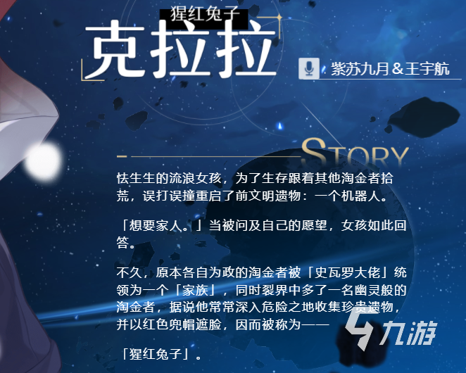 克拉拉這個(gè)角色在官方的設(shè)定中是一個(gè)流浪女孩,在機(jī)緣巧合之下撞見了前文明古物,也正因如此克拉拉的命運(yùn)發(fā)生了巨大的變化。在此后,克拉拉樂忠于收藏各種古物或是遺物??死膽?zhàn)斗方式以前文明古物中的巨型機(jī)器人為主,屬于輸出型角色。