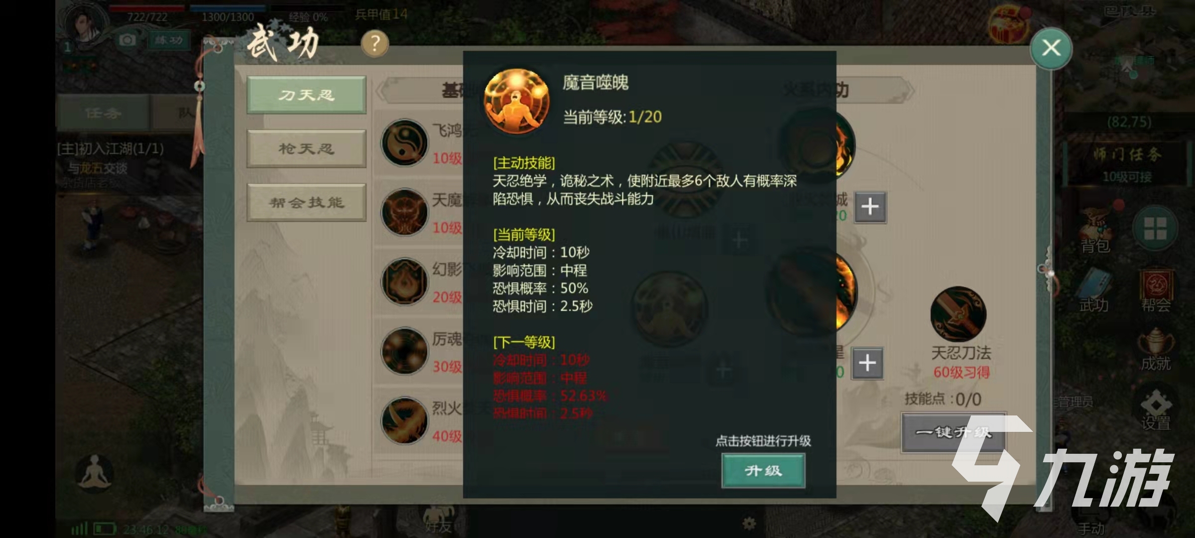 在PK中也是一樣,即使是少林,天王這樣的肉盾都難受,反倒是一些血量比較低的門派不怎么怕這個技能。升級這個技能可以大大提高出現(xiàn)致命一擊的幾率,所以絕對是刀天忍的核心技能。如果想要使用刀天忍去PK的話,其他的技能建議加魔音噬魂,這個技能的效果是可以使得周圍的敵人陷入恐懼之中,被恐懼的敵人會喪失戰(zhàn)斗力,升級這個技能可以提高被恐懼的幾率。在PK中這是天忍對付敵人的重要武器,對于遠(yuǎn)程門派,近身之后利用恐懼可以增加輸出的時間。