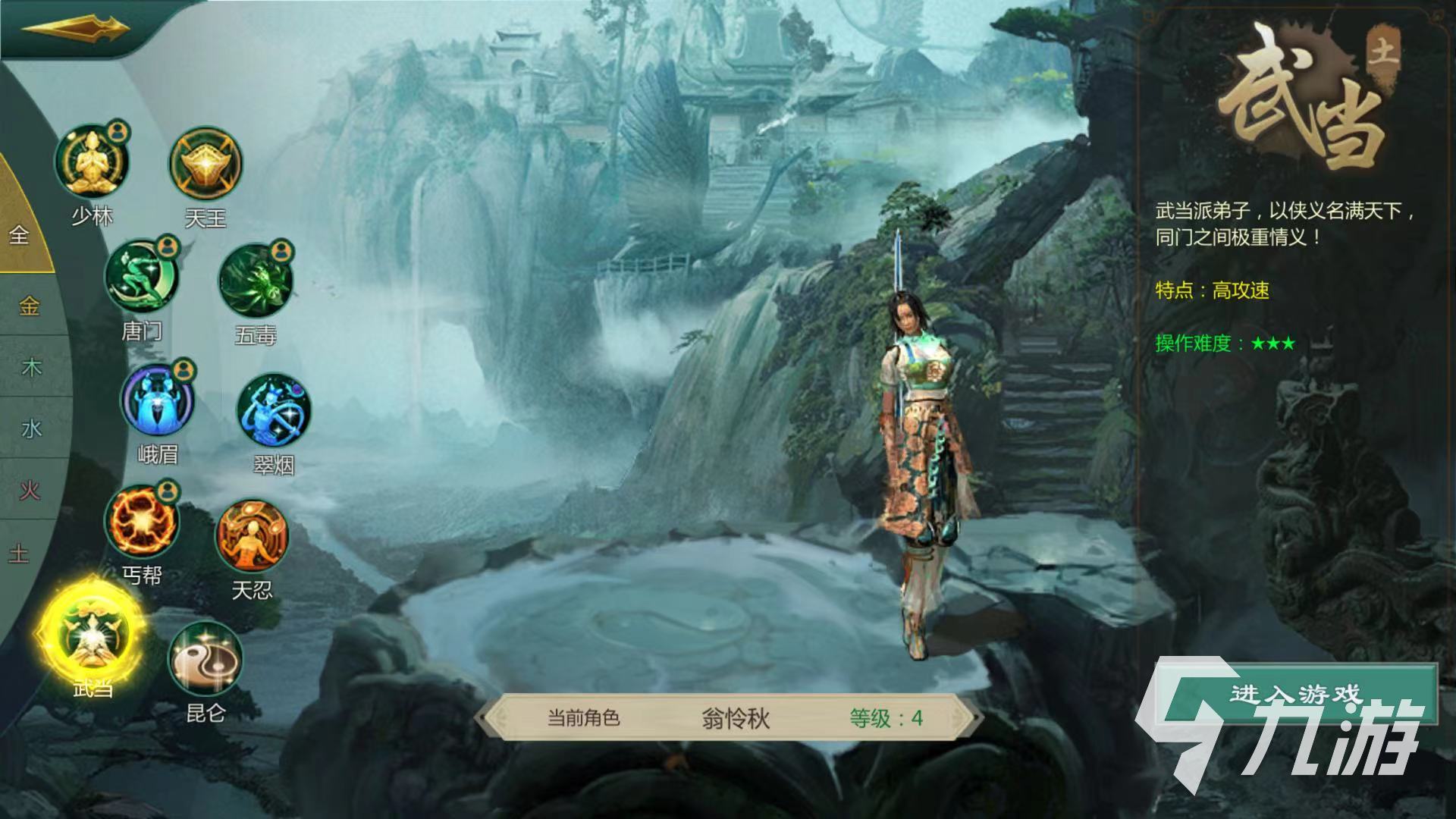 玩家進入游戲后,可以選擇武當職業(yè)進入武當了解流派時,包括劍武當和氣武當,選擇劍武當流派。劍武當是近戰(zhàn)路線,可以吸取敵方內力,氣武當是遠程對敵人單人控制能力強。