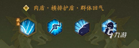 布袋和尚的戰(zhàn)法是乾坤一氣,布袋和尚使用乾坤一氣袋為其所在橫排的伙伴添加1個(gè)可吸收生命值上限20%傷害的護(hù)盾,自身增加1個(gè)吸收生命值上限40%傷害的護(hù)盾。釋放后進(jìn)入防御模式,防御模式下不會(huì)進(jìn)行任何行動(dòng),同時(shí)會(huì)開(kāi)始收集全場(chǎng)元?dú)猓{入乾坤袋之中。