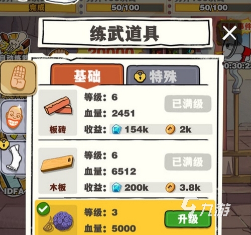 游戲主打功夫修煉,也就是練功游戲。玩家在游戲里作為一名功夫大師,精通毀壞各種道具,用不同的部位去擊毀道具就可以鍛煉該部位。
