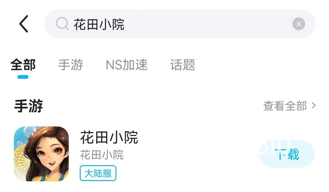 接下來是打開相關(guān)加速優(yōu)化功能,從該頁面中上方搜索欄輸入花田小院名稱,在下方彈出所有搜索結(jié)果中找到正確那一個,點擊一下旁邊按鍵,此時就能開啟該游戲網(wǎng)絡(luò)優(yōu)化。