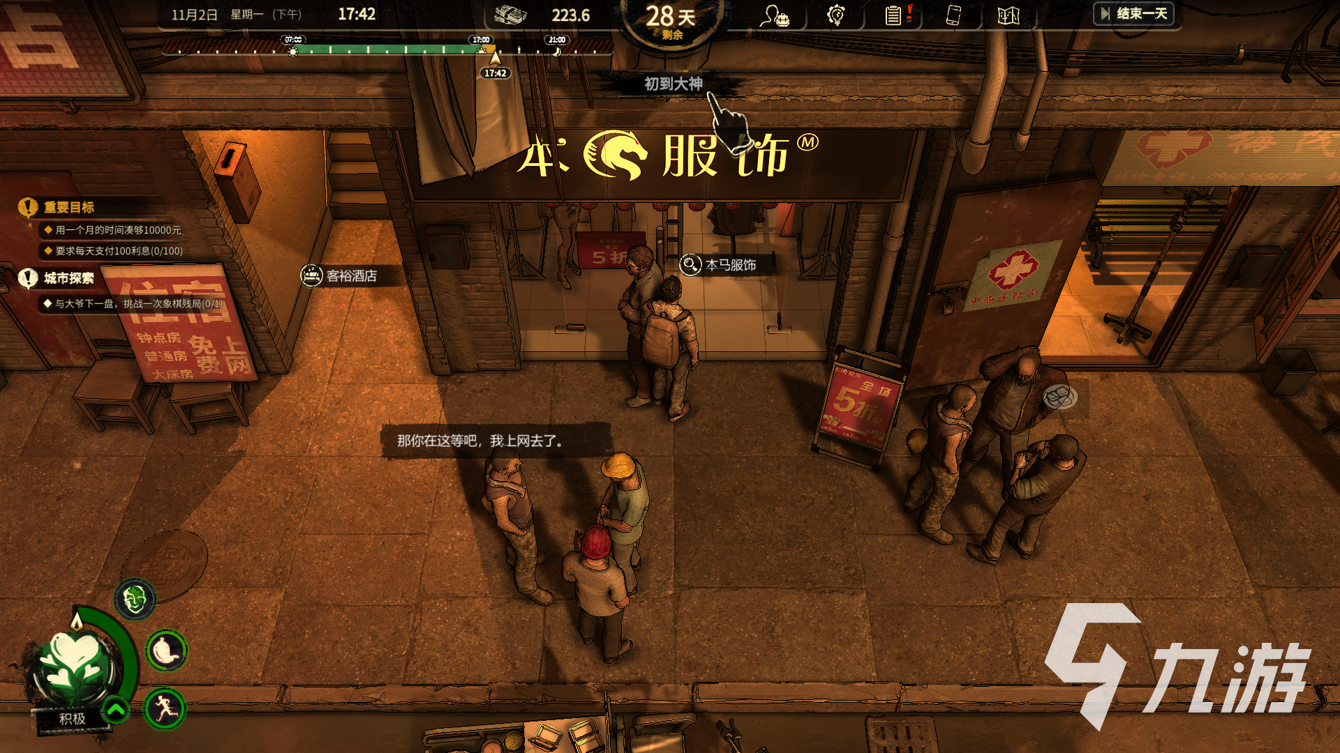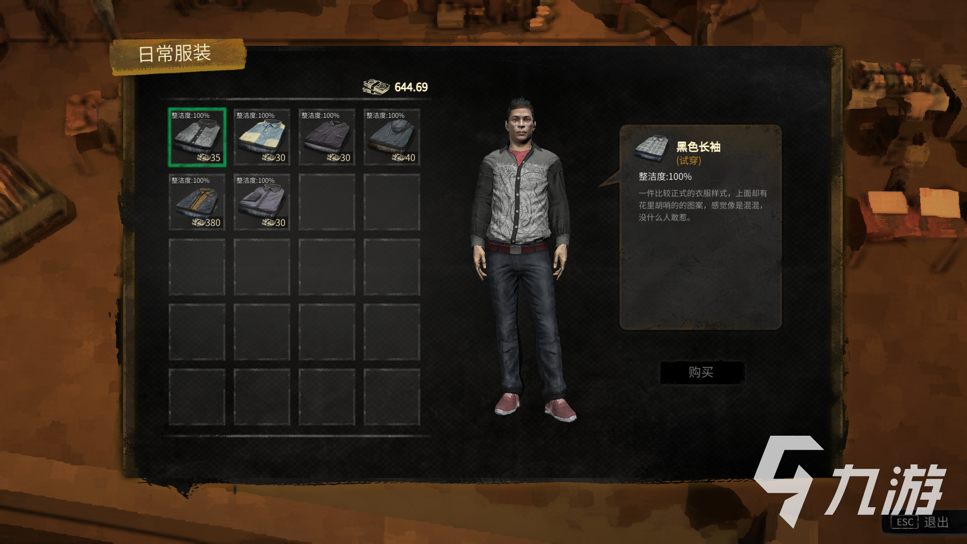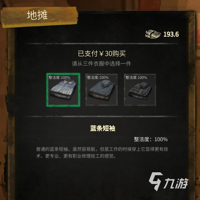 但是服裝店中的衣服價(jià)格較高,對(duì)于游戲初期的玩家來說難以承受,所以我們也可以在黃昏日落時(shí)來到日租樓下左手邊的攤位來購買衣服。