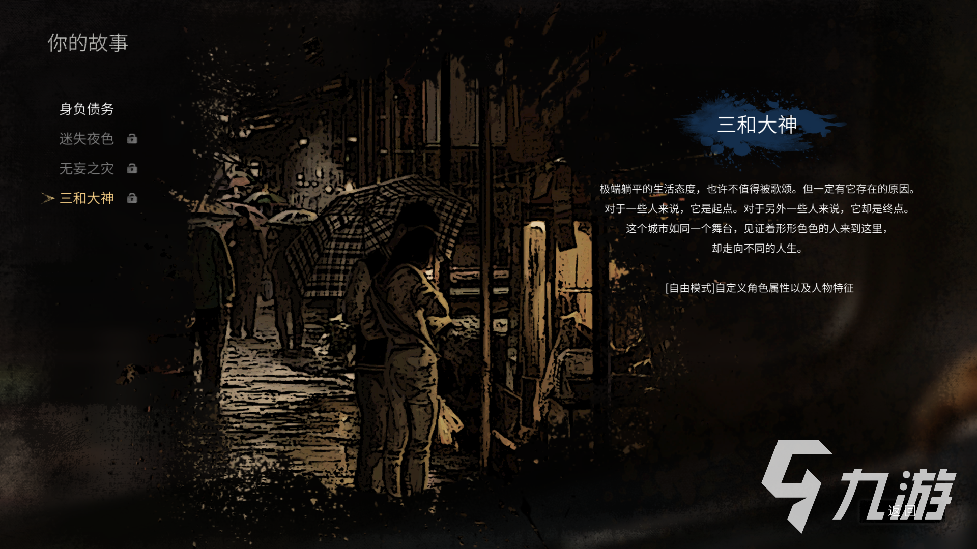 “三和大神”是游戲中的自由模式,在這個模式中你可以自由設(shè)定游戲角色的背景和屬性,相較于前三個劇本來說更加自由,玩家可以根據(jù)自己的情況來調(diào)整游戲的難度或目標(biāo)。根據(jù)官方提供的消息來看,“三和大神”將會在前三個劇本中生存超過30天后開放,但是目前試玩版“深陷債務(wù)”的劇本在12天后就結(jié)束了,所以“三和大神”這個劇本也將會在游戲正式上線后與大家見面。