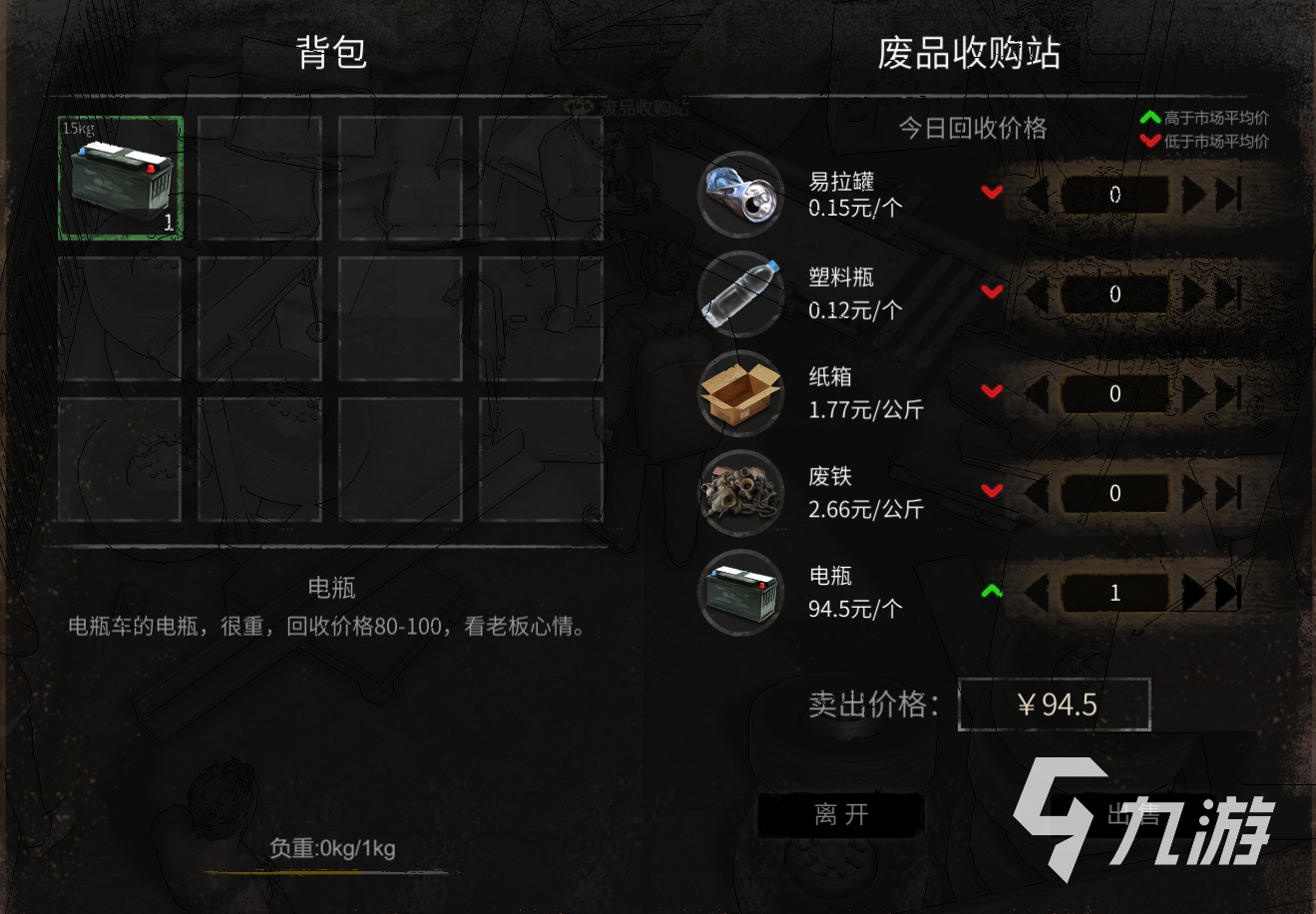 需要注意的是一個(gè)電瓶的重量為十五千克,角色的背包最多只能負(fù)重二十五千克,也就是說(shuō)我們每次只能攜帶一個(gè)電瓶和一些其他的可回收廢品,不能同時(shí)攜帶兩個(gè)電瓶哦!