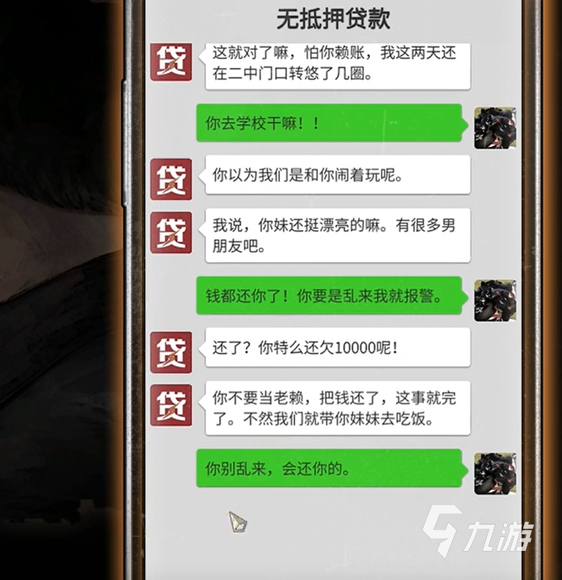 在背景故事中,高利貸給主角發(fā)催債信息,要求我們在一個月之內(nèi)償還一萬元的債務,并每天收取一百元作為利息,如果不能及時償還,妹妹將會隨時陷入危險。