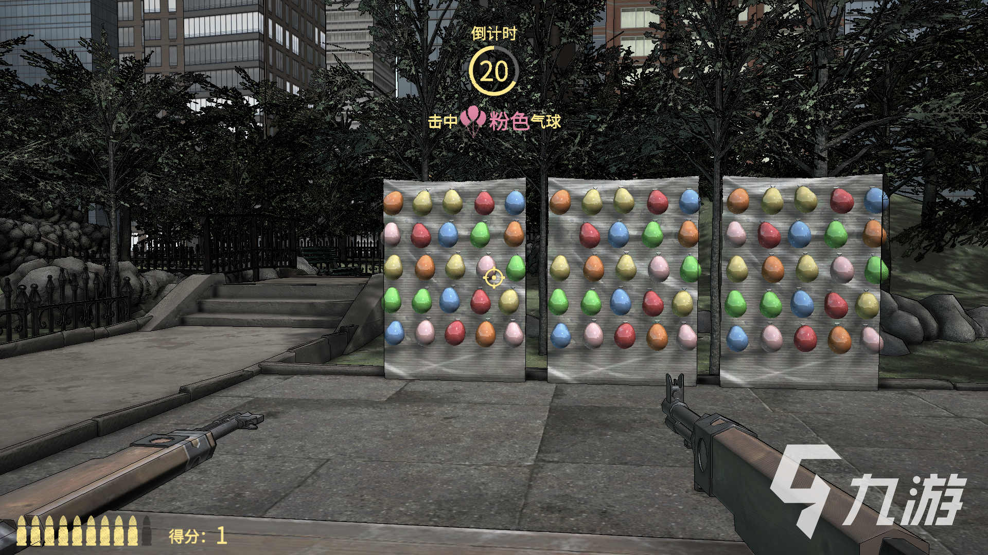 在游戲開始后,玩家有三十秒的時間來擊破氣球,我們可以移動鼠標(biāo)來控制氣槍的準(zhǔn)心瞄準(zhǔn)氣球,在瞄準(zhǔn)后點擊鼠標(biāo)左鍵來發(fā)射子彈。