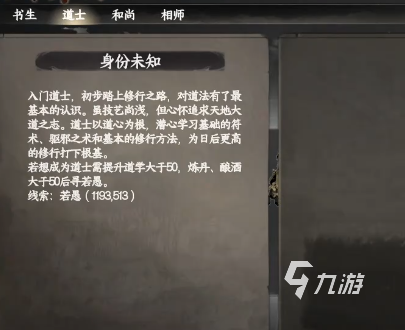 下一站江湖2中道士身份的獲得還是比較容易的,玩家只需要道學(xué)大于50,同時(shí)煉丹和釀酒都大于50的情況下,去觸發(fā)劇情便可以獲得道士的身份了。所以想要成為道士的話,第一步我們便是先從城內(nèi)各個(gè)地方買取道學(xué)、煉丹、釀酒這三種物品,通過使用來使得自身的數(shù)值可以達(dá)到道士的門檻。值得一提的是,這些物品在使用的時(shí)候是需要花費(fèi)人物的精力的,所以我們還需要額外準(zhǔn)備好一些補(bǔ)充精力的物品,如水餃,才可以使得3個(gè)點(diǎn)可以同時(shí)來到50。