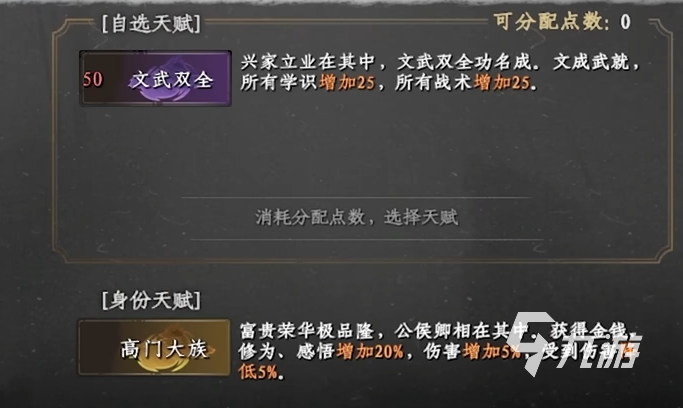 既然是完美開局,那么給我們自己增加天賦點數的肯定不考慮了。這其中點數足夠的話建議需要選擇太陰和太陽這兩個,這兩個天賦會讓我們本身在修煉任何功法都有著極高的優(yōu)勢,同時在發(fā)揮戰(zhàn)力方面也比一般的要強上許多?;旧现灰梢赃x中這兩個天賦的話就可以算得上完美開局了。其余的天賦玩家們如果還有著天賦點數的話可以酌情進行考慮,接下來選擇一些非戰(zhàn)斗屬性,接著選擇難度便可以進入游戲。