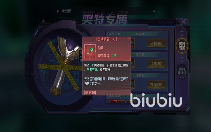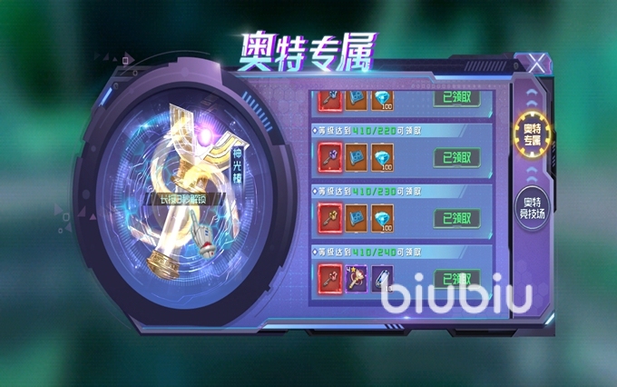 奧特專屬是主界面的一個圖標,玩家點擊進去就能看到,這里會顯示準備要解鎖神光棒的地方,玩家需要把英雄等級達成之后,就可以領取獎勵,解鎖神光棒了。