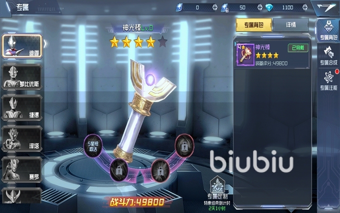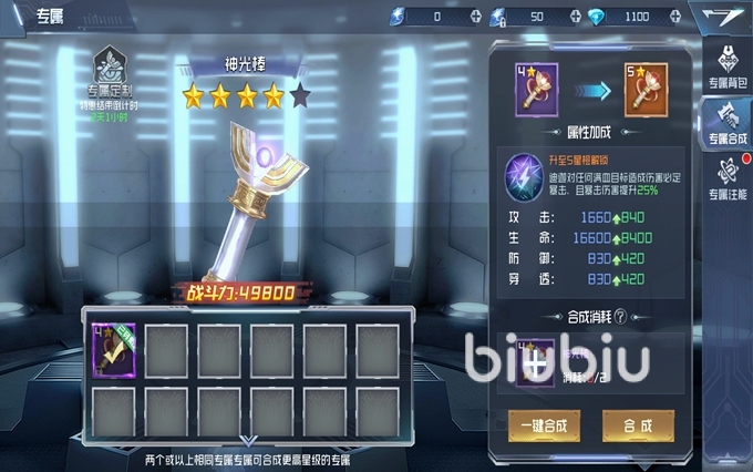 專屬合成就是能夠提升變身器的地方了,如果你想要把神光棒提升4星,那就是找齊2個3星的神光棒,進行專屬合成,這樣就可以提升到4星了。