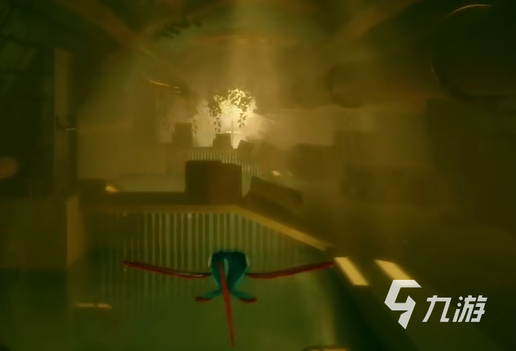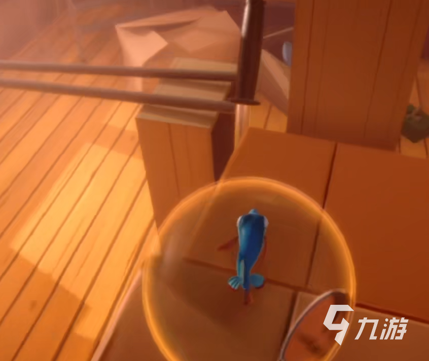 一開始的劇情動(dòng)畫之后我們?cè)诠褡拥捻敹?。接下?lái)我們沿著前方所搭建的平臺(tái)一路往下移動(dòng)。記住不要從高處往下跳,因?yàn)檫@樣會(huì)直接讓我們的魚缸碎掉。接下來(lái)一路根據(jù)樓梯往下走,便可以進(jìn)入到大浴缸,這個(gè)時(shí)候我們的能力也可以使用了。因?yàn)轱w魚所以我們是可以在空中進(jìn)行一定程度的滑翔。
