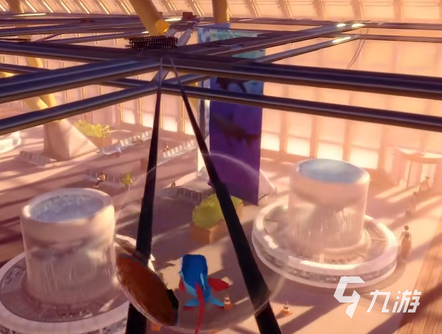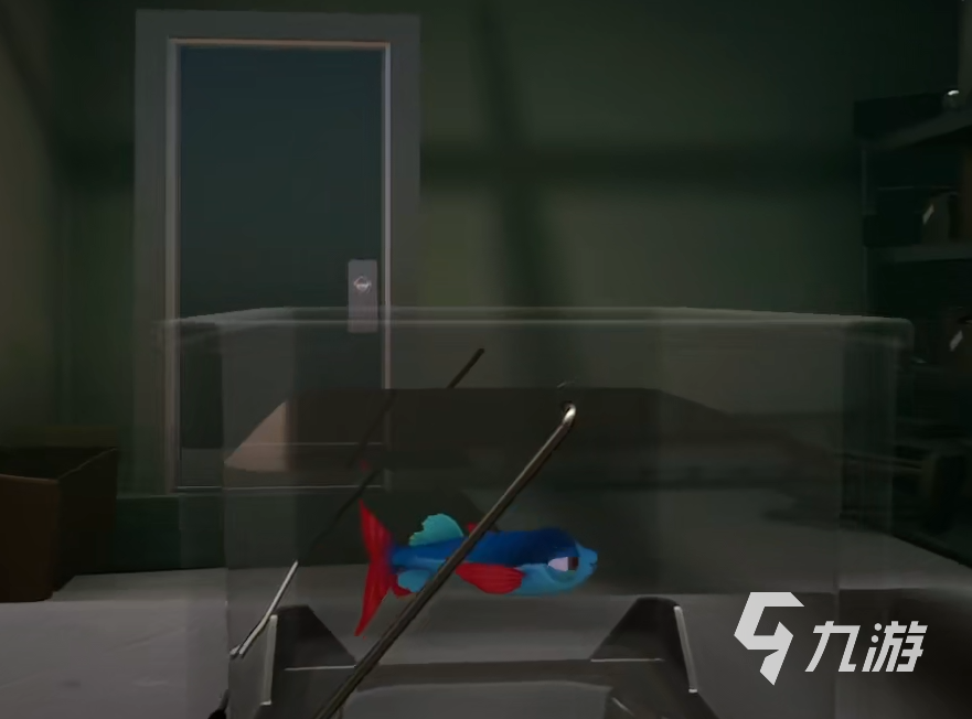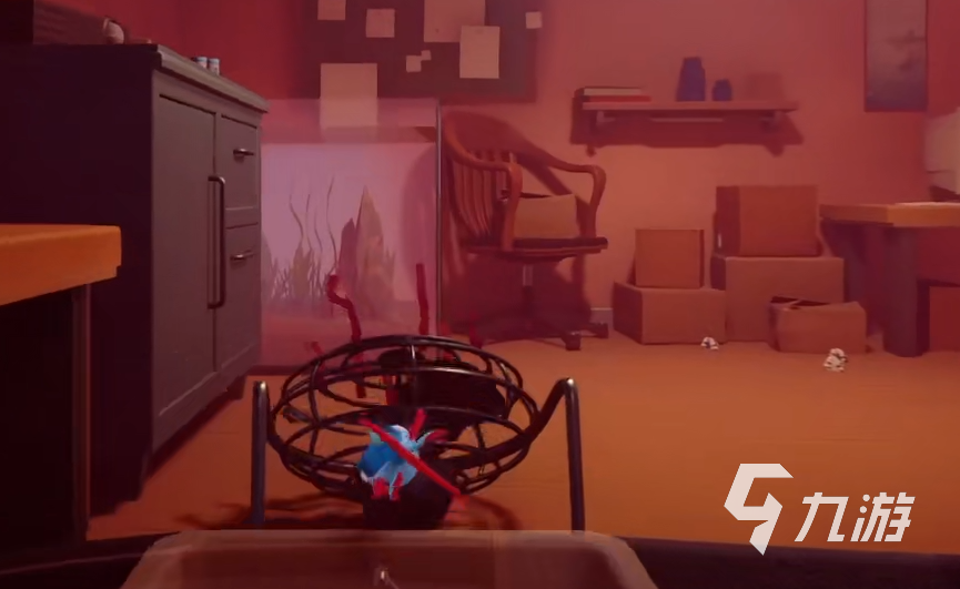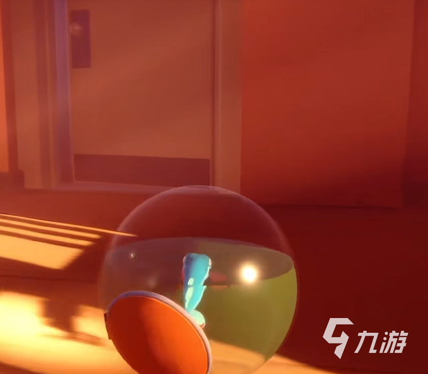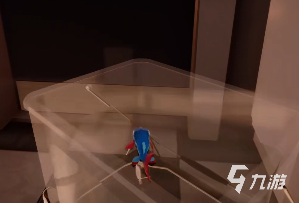 然后將推車移動到前方的小電風扇旁邊,我們看準實機調(diào)到電風扇上方,玩家們可以借助風流落到前方的金魚缸之中。在進入魚缸之后我們需要轉換一下視角到對面斜角的窗戶那里,在窗口上有一個魚缸,但是距離比較長,這里玩家們需要注意操作。