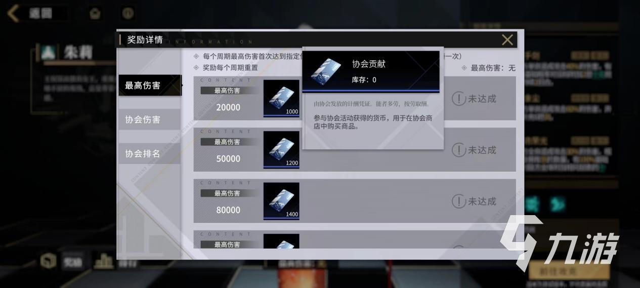 在加入一個協(xié)會以后就可以參與這里的活動,每周其中有一項是每周玩家的最高傷害在達到對應的數(shù)值時,就能領取那里相應的獎勵,每一處此周只能領取一次,而這個獎勵就是協(xié)會貢獻。