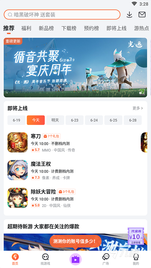 而打算預(yù)約或者下載新作的話,小伙伴們只需要打開九游app,如上圖所示,可以在首頁的推薦游戲一欄里面或者即將上線的游戲一欄里找一找有沒有自己想玩的新作,沒有看到的話,就可以通過其搜索功能來查找自己需要的游戲;