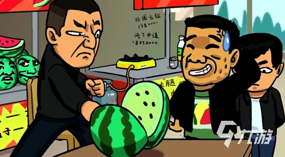 這關玩家們需要幫助小攤將生瓜催熟才可以過關,進入游戲后一個坐在椅子上的人會問“你這瓜保熟嗎?”然后一臉麻子的胖大樹會回“我難道會賣你生瓜蛋子嗎?”此時前者會立刻拍一下這個瓜。