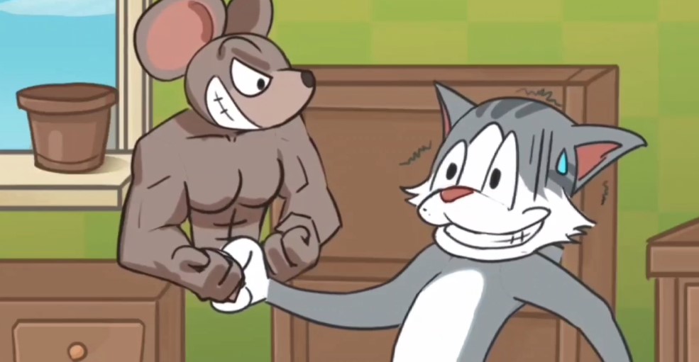 接著將這三塊奶酪蛋糕全部喂給小杰瑞,此時杰瑞會長出肌肉,然后在將左上方的菠菜放在右上方的盒子里可以變成大力菠菜,給杰瑞吃后會直接帶上水手帽成為大力水手打敗湯姆。