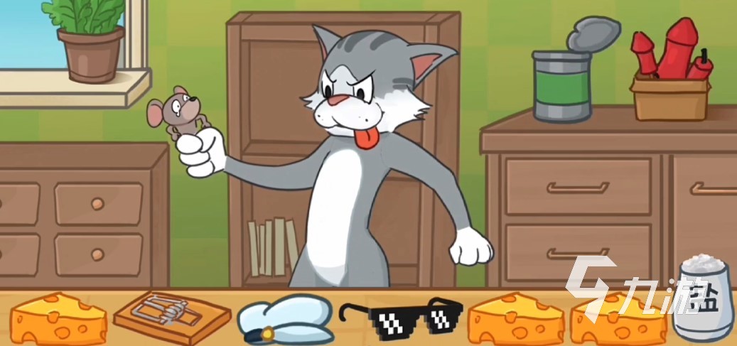 這一關也是里面比較難的一個,下面來介紹一下她的過關方法,進入游戲后你們是一只小老鼠,正準備偷吃東西,但不巧被湯姆給抓住了,你們需要幫助杰瑞逃出湯姆的爪牙,先在左右兩邊的抽屜里找到三塊奶酪蛋糕,然后在拿出一定水手帽子。