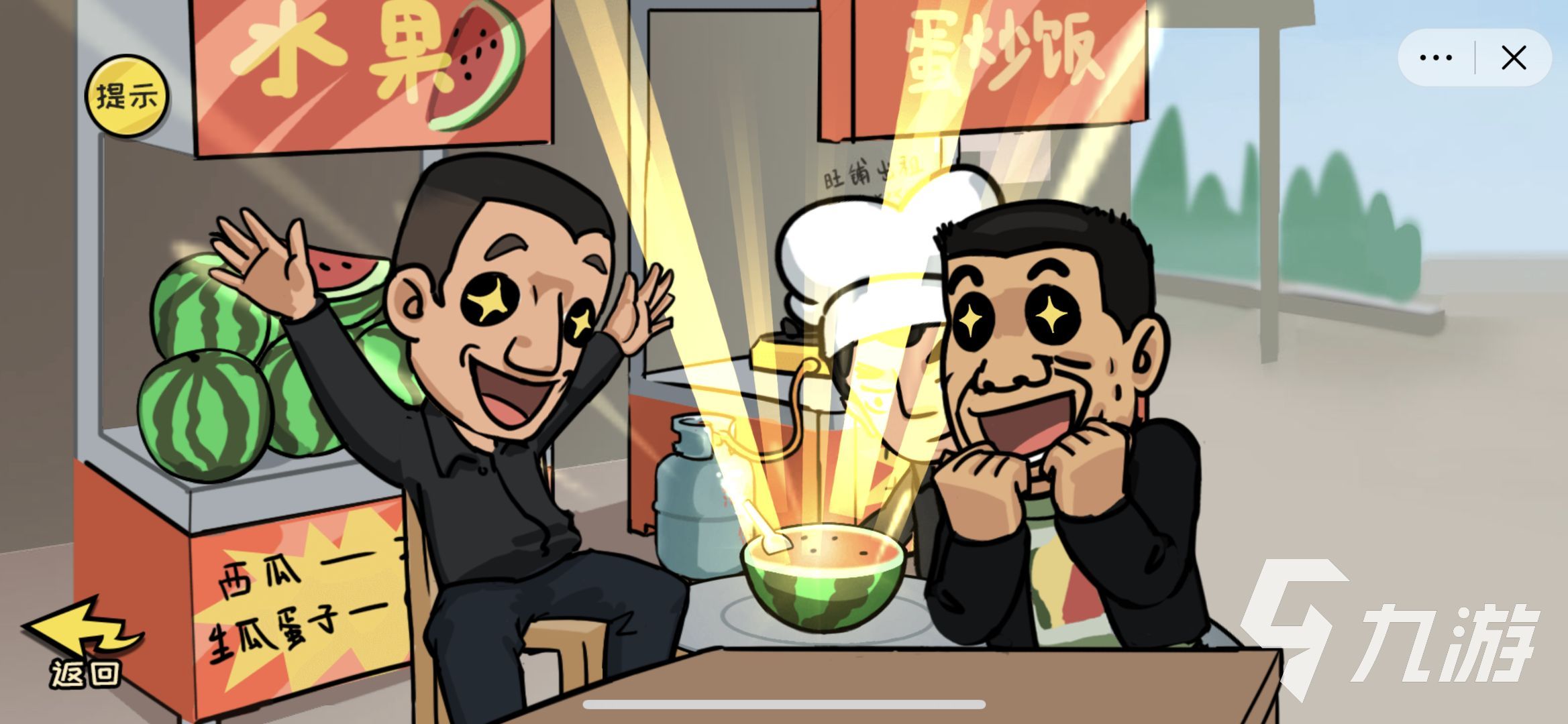 然后說是生的便要開始找你茬,大家必須要立刻將右邊的小伙子拖到蛋炒飯小攤旁邊,此時小伙子頭上會出現(xiàn)一頂廚師帽,再將西瓜放到炒盤里去超,接著熟西瓜就出現(xiàn)了。