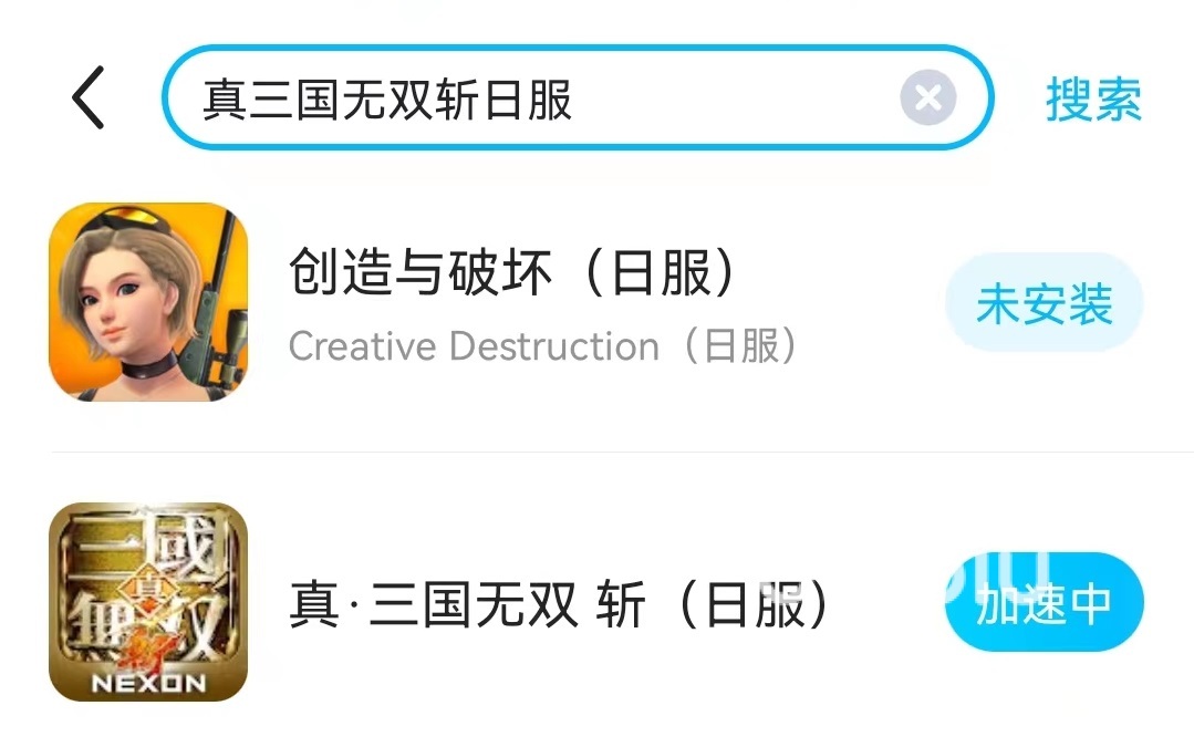 等到谷歌三件套安裝完成之后,再回到加速頁面,點擊上面的真·三國無雙斬日服圖標(biāo)就可以正常開啟游戲了。