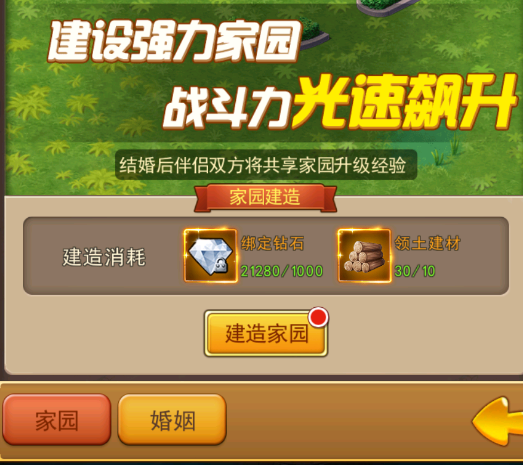 此游有一項功能就是建設(shè)家園,但想要建立自己的餓領(lǐng)土,就需要先升級開啟,其中的一些建設(shè)材料也是要進行收集的,沒有材料就不能進行建造,其中有一個比較快捷的方式就是建議各位先結(jié)親。