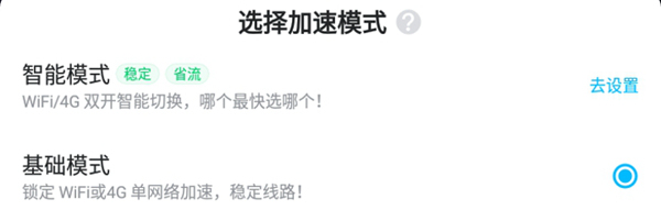 如果感覺沒有什么效果,嘗試一下別的加速模式看看。目前平臺(tái)提供了兩種加速模式,一般來說智能模式要更加穩(wěn)定而且可以節(jié)省很多的流量。