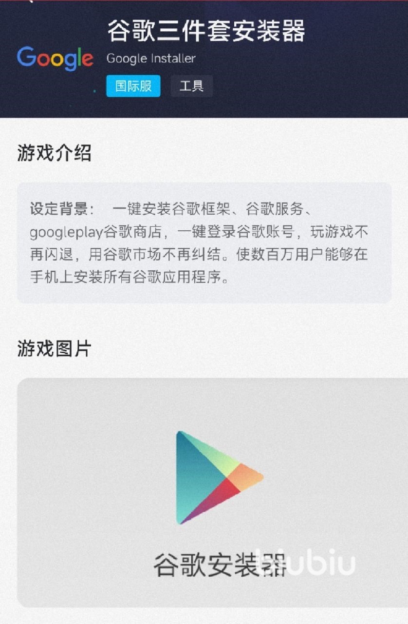想必大家也注意到了這是一款國際服的游戲,那在對它進(jìn)行加速時,還需要額外增加一個步驟,那就是需要下載一個輔助工具。大家要先在biubiu上搜索下載谷歌三件套,之后根據(jù)系統(tǒng)引導(dǎo)進(jìn)行安裝即可。