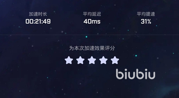 添加完成之后我們在加速界面點擊對應游戲名稱后方的按鈕就可以完成一鍵加速,加速過程中可以看到加速的效果,加速器會在我們游玩的過程中自動進行加速節(jié)點的切換,如果不滿意可以手動結(jié)束加速并且重新開啟。當我們結(jié)束加速之后可以看到加速開啟的時長以及提速后的平均延遲情況、平均提速的效果。Biubiu加速器的加速效果還是相當不錯的,而且針對不同玩家的情況,還提供了基礎(chǔ)模式以及智能模式這兩種加速模式可以選擇。