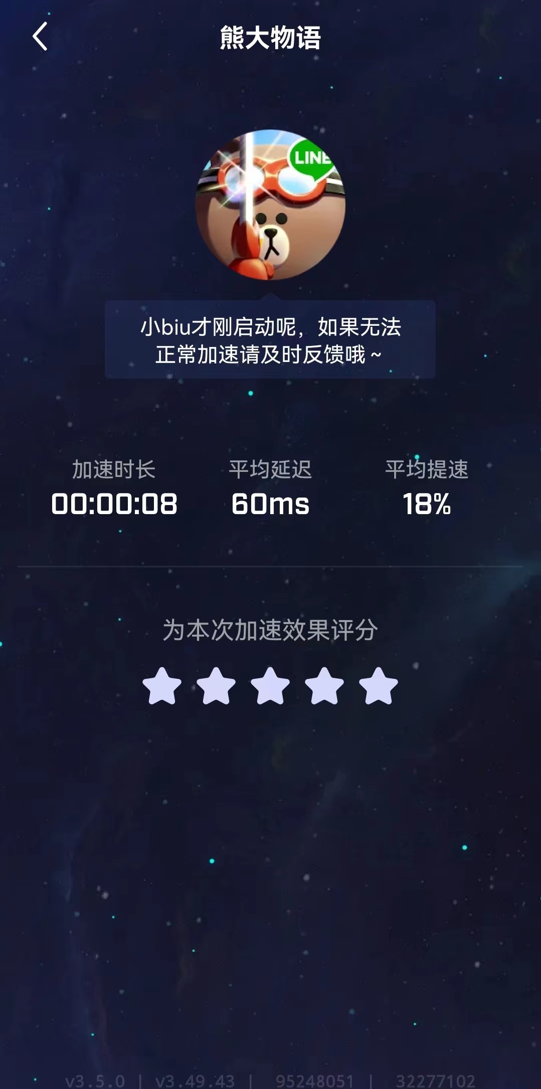 找到熊大物語之后,在旁邊會(huì)有一個(gè)對(duì)應(yīng)的加速按鍵,只需要點(diǎn)擊一下就可以開始加速這款游戲。加速過程中的細(xì)節(jié)操作全部由biubiu加速器后臺(tái)自動(dòng)完成,所以真正實(shí)現(xiàn)了一鍵加速。