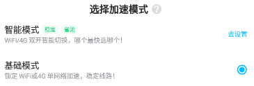 當(dāng)然了,加速也會(huì)分為智能模式和基礎(chǔ)模式的,小編推薦大家只需要使用基礎(chǔ)模式就可以很好的幫助到大家了,如果大家有需要也是可以去選智能模式的。