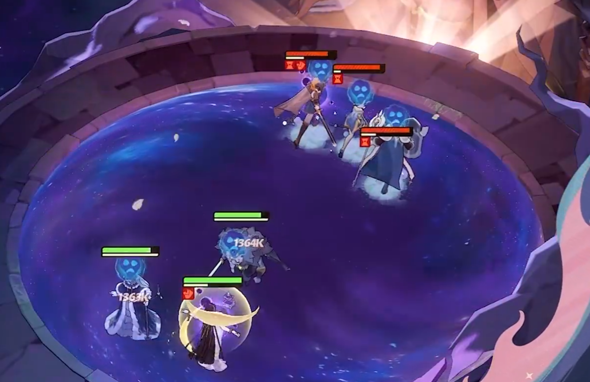 技能1“魔盒庇護”,戰(zhàn)斗開始時,將最靠后的一名隊友吸入魔盒當中,使其處于無敵狀態(tài),但無法使用任何技能,期間她會每秒給該名隊友恢復(fù)能量,經(jīng)過一段時間后將其從中放出來,隨后提升該單位的攻擊力。