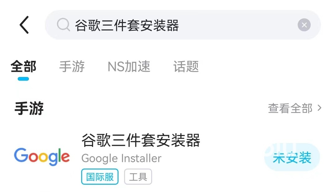 如果想登入的是國(guó)外的服務(wù)器,還需要在資源庫(kù)里下載一個(gè)谷歌的服務(wù)組件,直接搜索名稱就能免費(fèi)完成下載安裝。