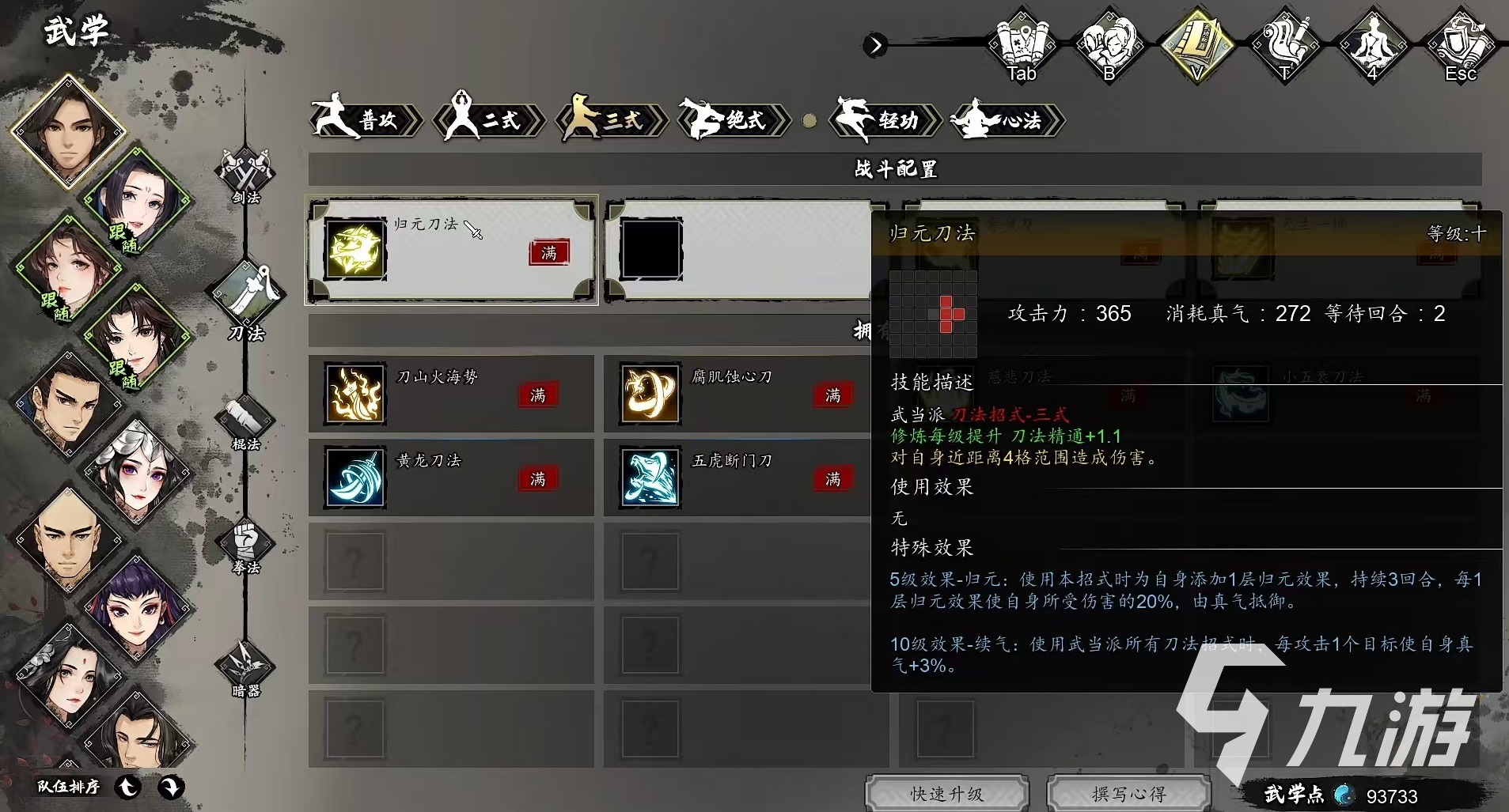 第4個金刀破馬,平康城武館處花費2800文購買,傷害前方橫排三格范圍,攻擊的時候有25%的幾率無視目標(biāo)防御,打出破防一擊。第5個五虎斷魂刀,在梧桐村的客棧處和霸刀切磋之后獲得,也可以在平康城武館購買,該刀法傷害范圍大,橫排六格范圍都可造成傷害,同時提升自身50點攻擊,持續(xù)三回合。