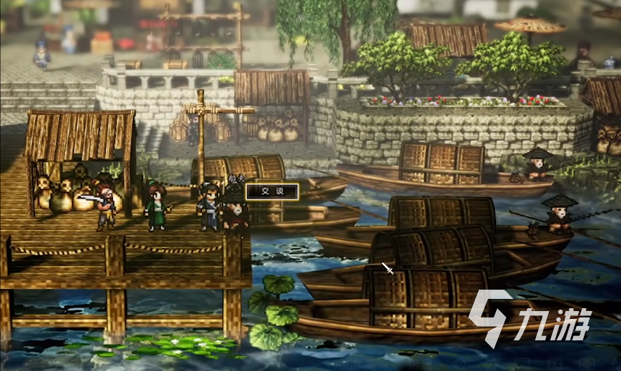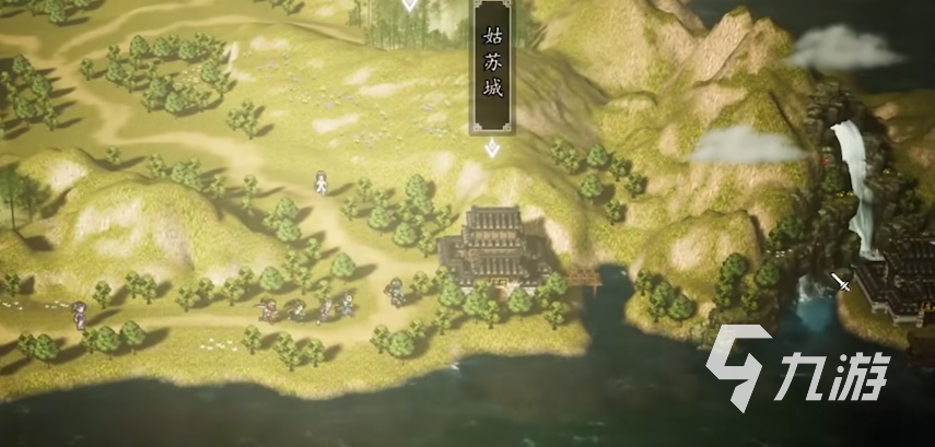 點開地圖找到【姑蘇城】傳送點,進入姑蘇城城門后一直往右走,來到河邊找到船夫坐船就能前往【名劍山莊】了。