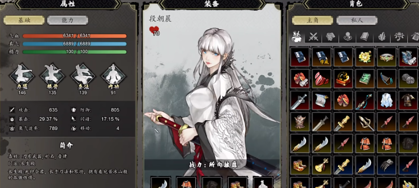 前期可以采用衛(wèi)霍(肉盾)+白錦(暗器)+上官虹(劍法),輔以陳麟熙(拳掌)。中期加入司馬鈴與孔亮后,刀劍合并;后期有了冷無(wú)情、葉飛的加入可以進(jìn)一步補(bǔ)充輸出。