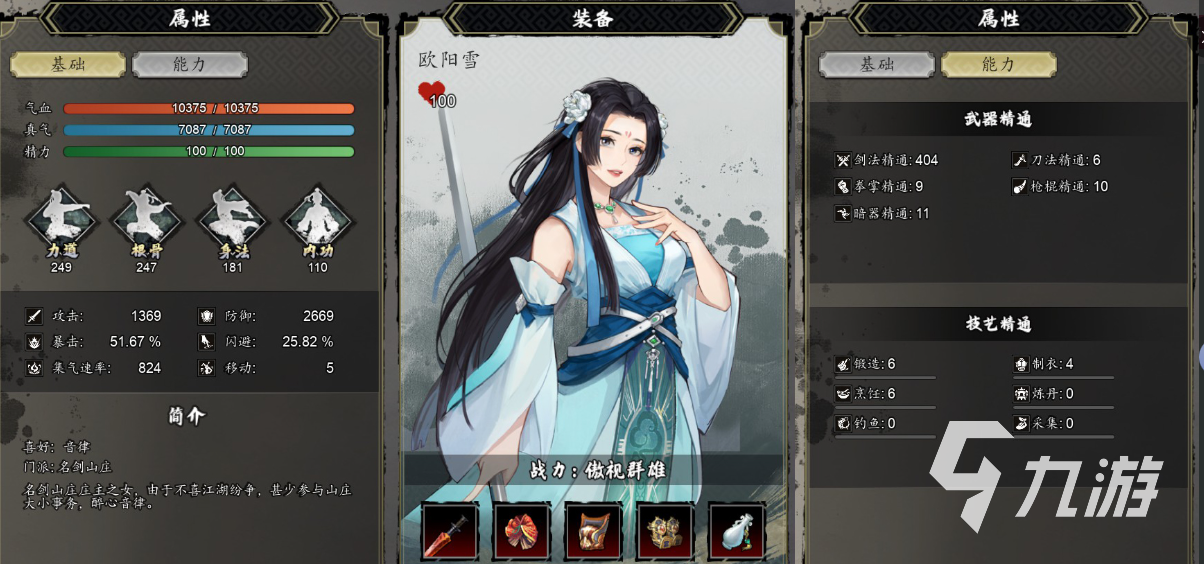歐陽(yáng)雪:會(huì)一直陪伴玩家左右,輸出能力是很扎實(shí)的,好感度可以直接拉到100??梢宰鳛閮?yōu)先培養(yǎng)的對(duì)象,通過(guò)補(bǔ)充缺失的輕功就能有效強(qiáng)化輸出的潛力。