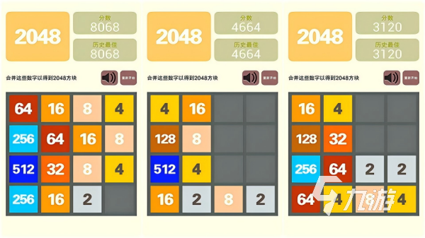 這款游戲中,向大家提供了一個(gè)簡(jiǎn)單的4乘4這16方格,其中會(huì)隨機(jī)掉落各種數(shù)字,玩家們需要進(jìn)行的操作就是移動(dòng)相同的數(shù)字令它們相撞合并,生成一個(gè)加倍的新數(shù)字。簡(jiǎn)單有趣的玩法之下,是對(duì)小伙伴們?nèi)值乃季S邏輯考驗(yàn),大家需要全方位思索每一個(gè)數(shù)字的合成過程,避免出現(xiàn)小數(shù)字被大數(shù)字團(tuán)團(tuán)圍住,導(dǎo)致無法展開合成。