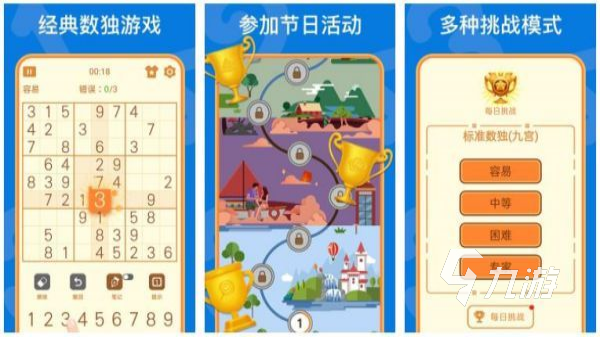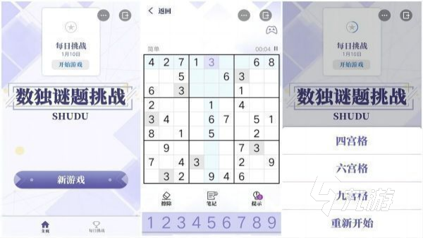 這是一款充滿思維邏輯考驗(yàn)的數(shù)學(xué)小游戲,它以1到9這幾個(gè)數(shù)字的組合,演繹出了千變?nèi)f化的各式關(guān)卡,供大家展開快樂挑戰(zhàn)。由九個(gè)3乘3宮格,構(gòu)成了一個(gè)9乘9的大方格,玩家們需要展開的挑戰(zhàn)就是,在這個(gè)大方格中,根據(jù)已知數(shù)字,以及不重復(fù)的原則,將1到9的數(shù)字完美填入空格中。新手玩家也可以嘗試四或者六宮格簡(jiǎn)單模式。