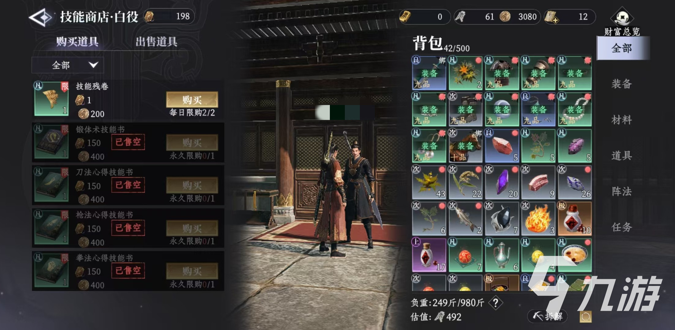 要注意不同流派的技能選擇的技能商人也是不同的,大家選定技能之后,可以直接切換到對(duì)應(yīng)的商人處,自動(dòng)尋路就能找到。玩家在不同品級(jí)的時(shí)候,所購(gòu)買到的技能書也是不一樣的。例如在打更人衙門屬于白役階段,只能購(gòu)買到基礎(chǔ)技能書,只有提升到了銅鑼才可以購(gòu)買到后續(xù)入門技能書。但是升級(jí)需要滿足一定的條件,不可能一次性將所有的技能都學(xué)會(huì),需要比較漫長(zhǎng)的過(guò)程。
